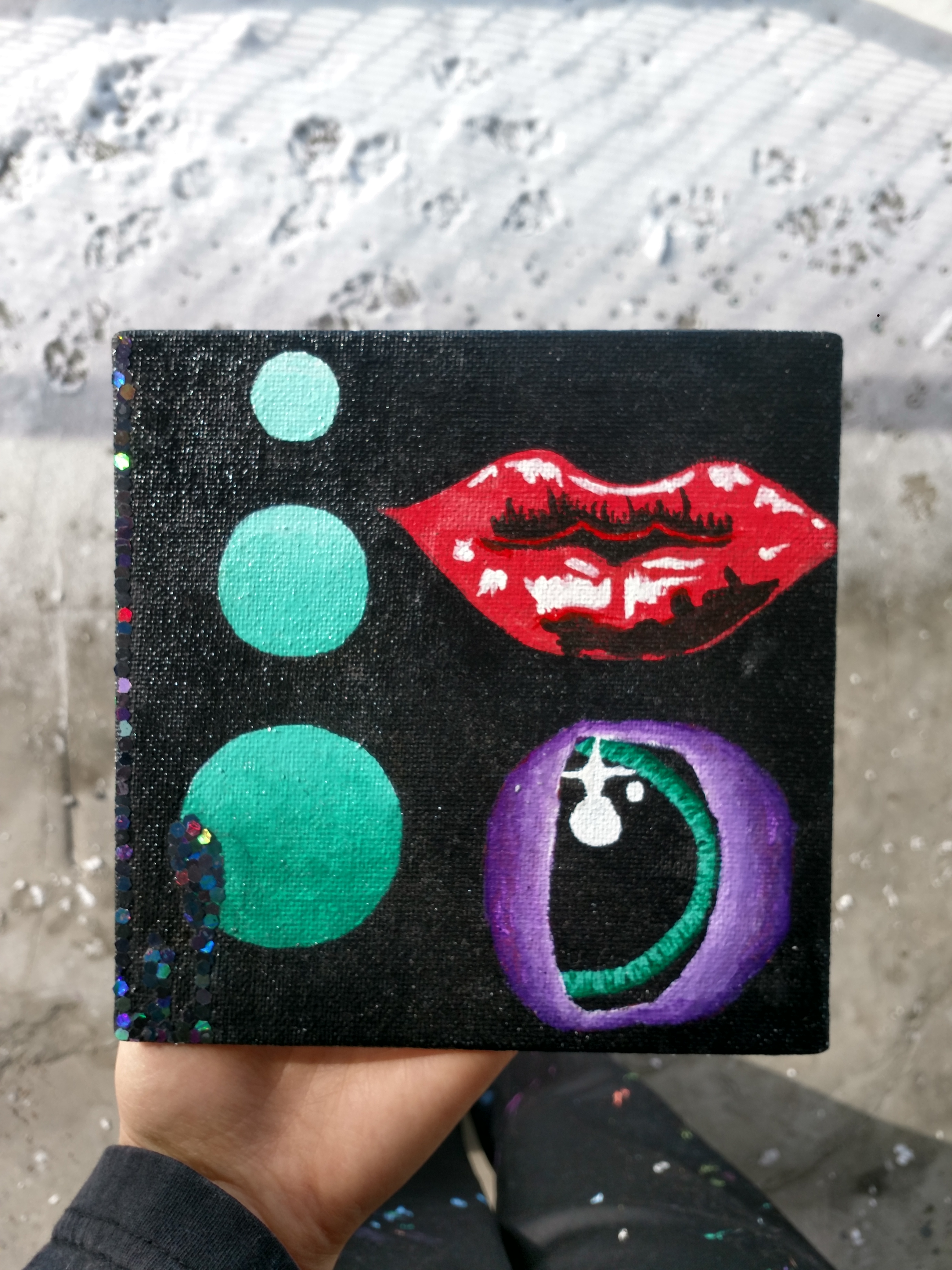 6" x 6" Acrylic on Canvas with glued sequins ✨✨